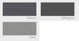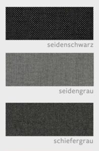 optional: Sitzauflage aus 100% Polyacryl mit Reißverschluß – Farben: seidengrau, schiefergrau, seidenschwarz