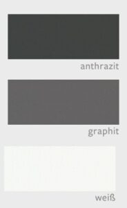 anthrazit/karbon, anthrazit/silber, graphit/silbergrau, weiß/silber