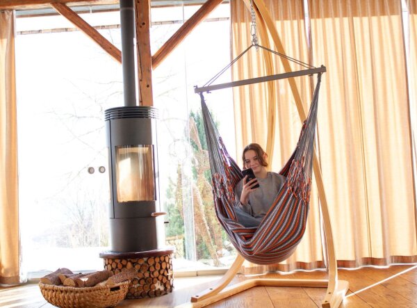 Dort, wo der Platz zum Aufspannen einer Hängematte nicht reicht, ist immer noch genügend Raum für einen Hängesessel von CHICO. Egal, ob am Balkon, auf der Miniterrasse oder am Baum – mit einem Hängesessel genießen Sie fast alle Vorzüge einer Hängematte, ohne sich dabei beengt zu fühlen. Denn, wie alles Gute, kommt auch der CHICO-Hängesessel von oben: Wahlweise am freistehenden Gestell, mit einer Wandbefestigung oder am Ast eines Baumes montiert, wird er rasch zu einem besonderen Platz der Entspannung. Und die sanfte Pendelbewegung, die er erzeugt, werden Sie bald nicht mehr missen wollen.