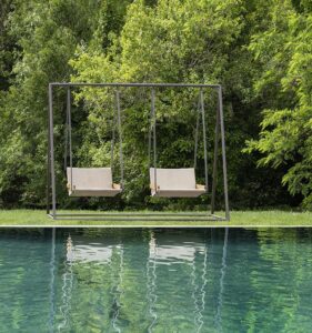 es gibt auch ein passendes freistehendes Gestell für 2 Hängesessel