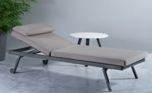 Die Kissen haben abnehmbare Bezüge und eine verstellbare Kopfstütze. Garngefärbter Acrylstoff für den Außenbereich mit weichem Griff. Der Stoff verfügt über eine spezielle wasser- und ölabweisende Ausrüstung sowie eine Anti-Schimmel- und Fleckenschutzbehandlung.