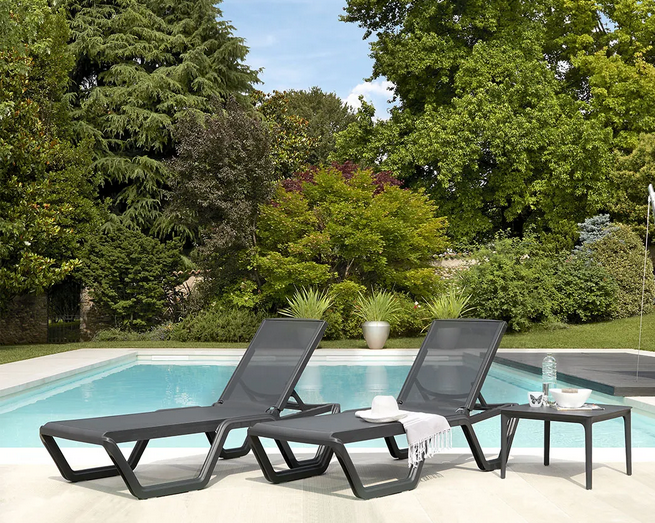 Elegant und funktional, hat sie ein essentielles Design, das sie zu einem perfekten Möbelstück für Außenbereiche wie Strände und Pools macht.
