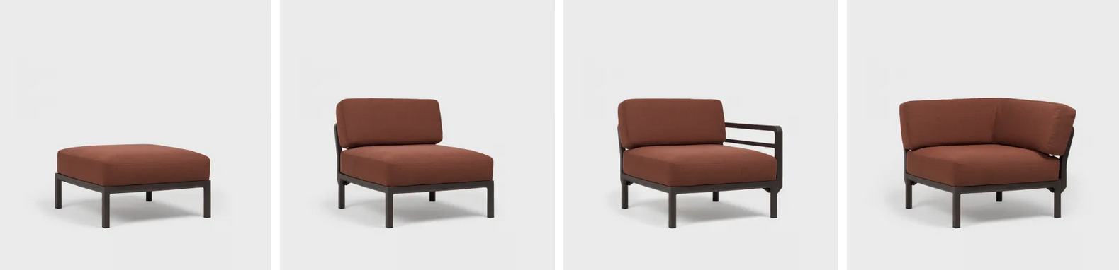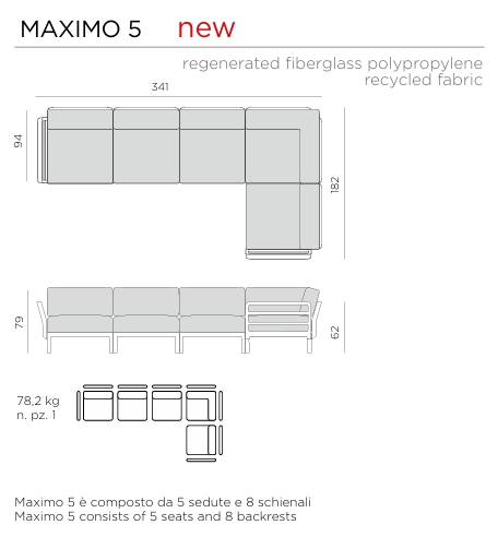 erhältlich als Maximo 5 besteht aus 5 Sitzmodulen und 8 Rückenlehnen oder in einzelnen Modulen zum selbst konfigurieren