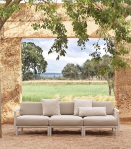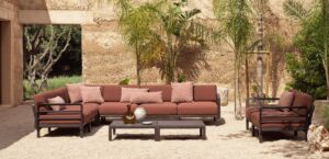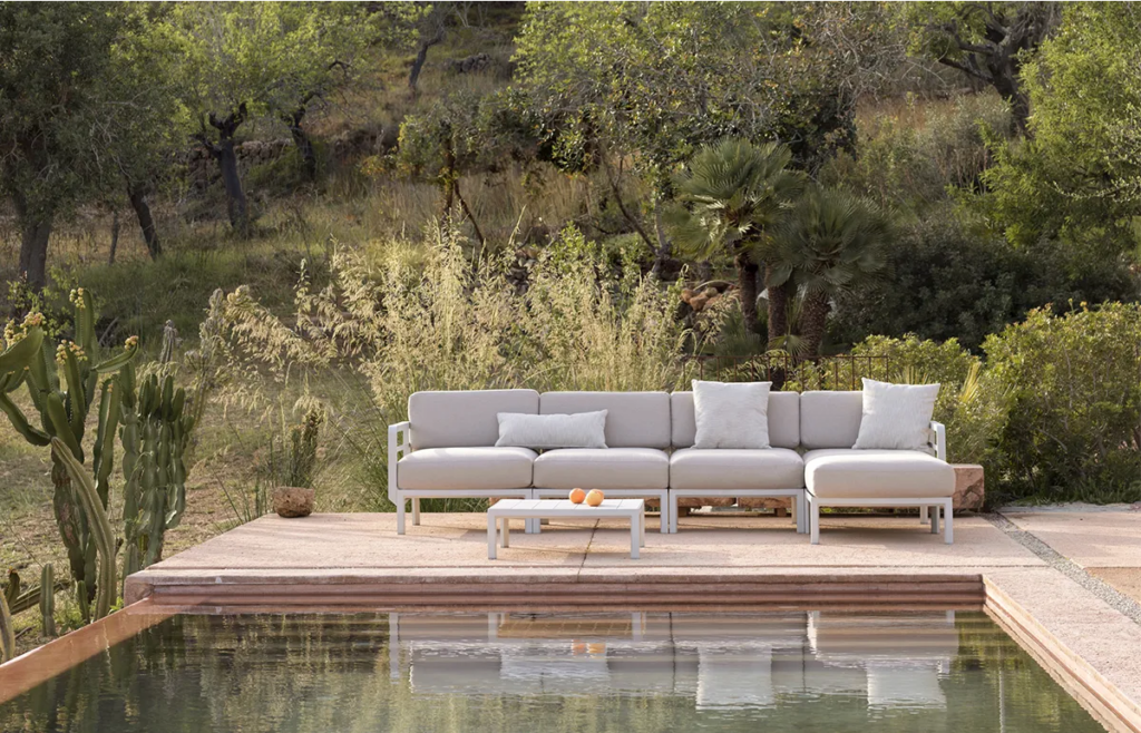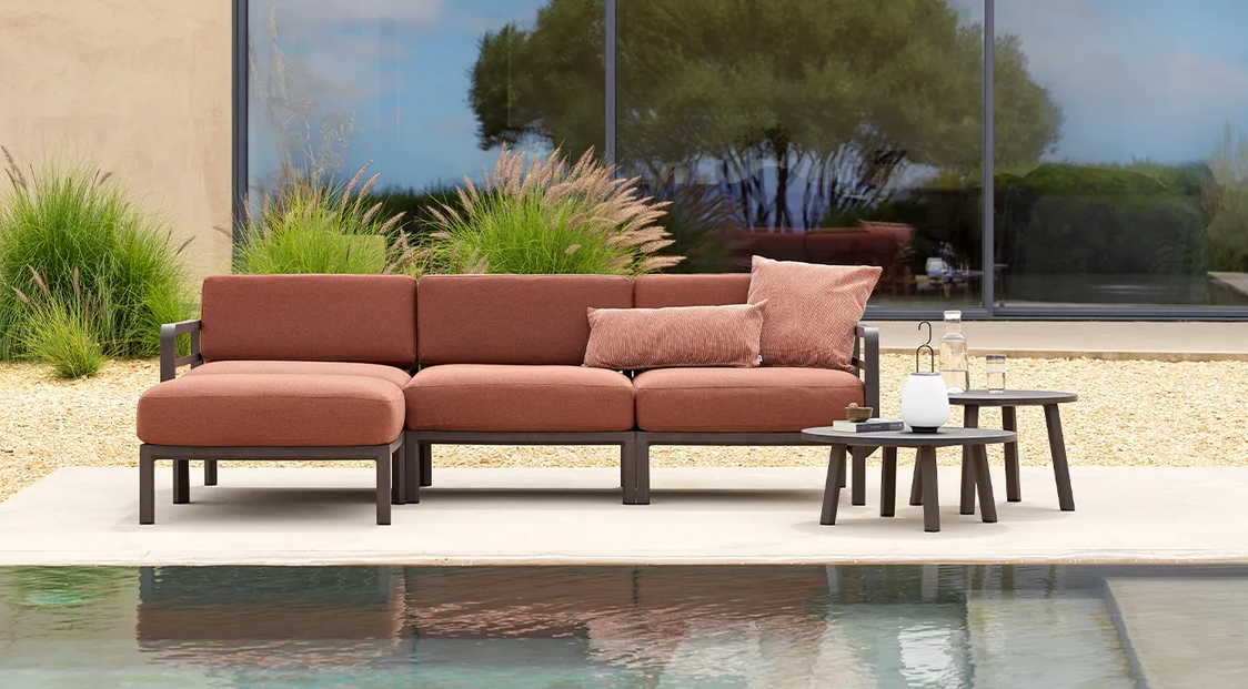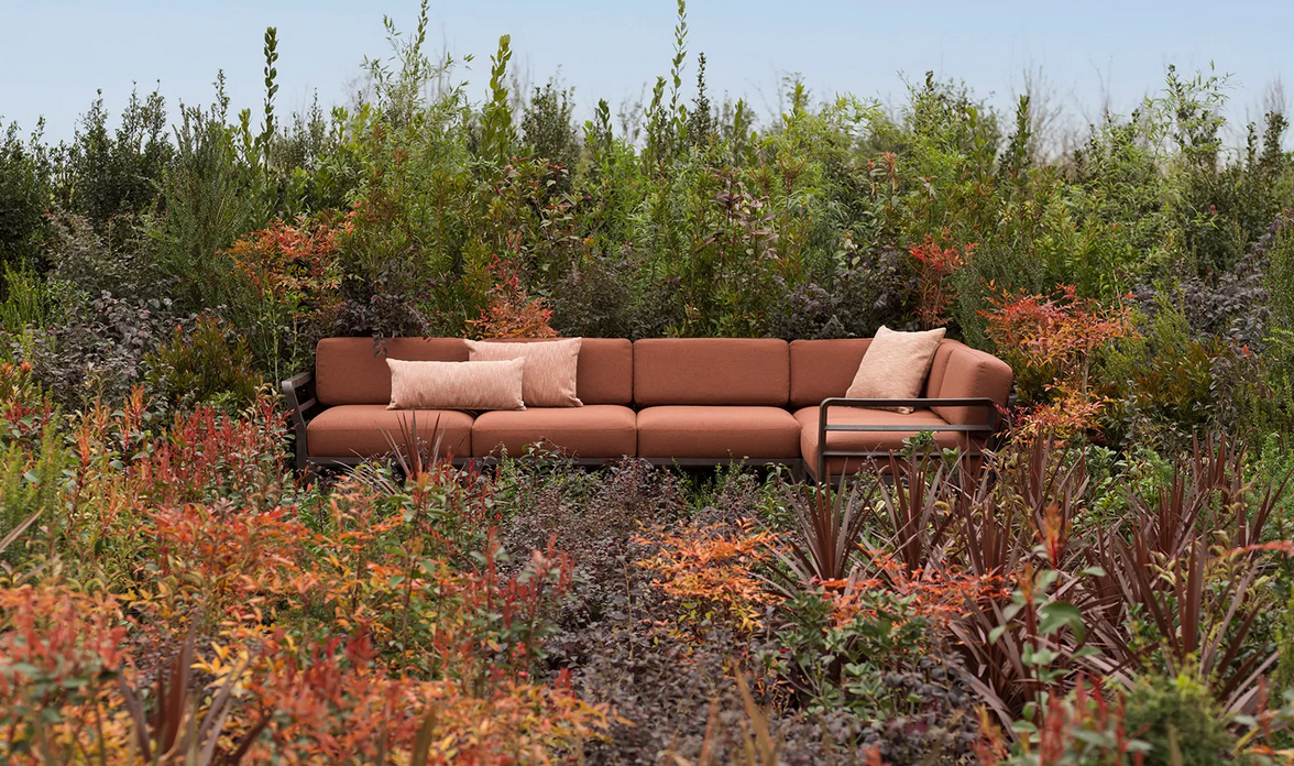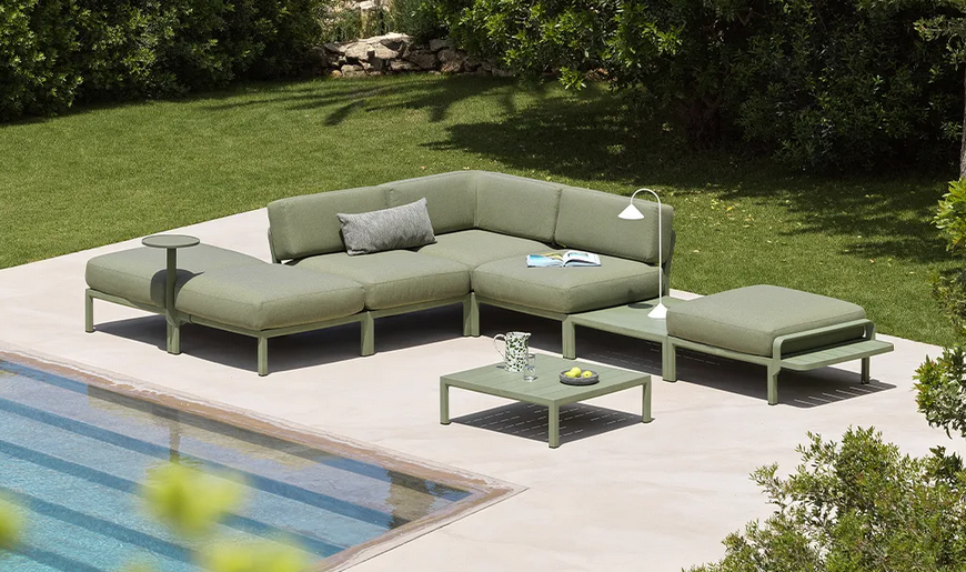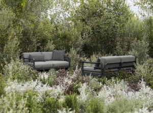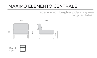 MAXIMO ist ein modulares Sofa mit Struktur aus regeneriertem Kunststoff und Geweben mit einem hohen recycelten Anteil, das, ausgehend von einem einzigen Sesselmodul, die Zusammenstellung zahlloser Konfigurationen ermöglicht.