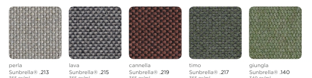 Sunbrella® Polyacryl, 3% Polyester. Lichtechtheit 8/8, waschbar bei 30°,