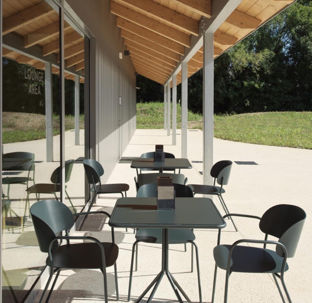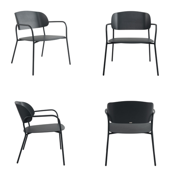 zur Kollektion gerhört auch ein Stuhl, Armlehnstuhl, Barstuhl und Tische
