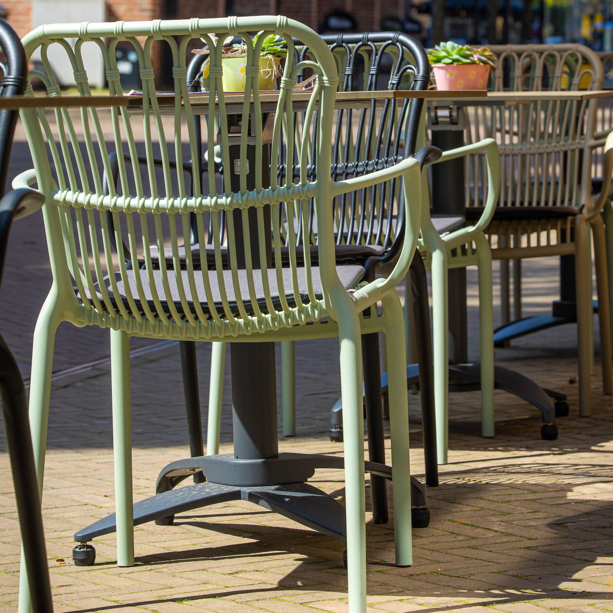 Farben: schwarz, sand, grün, rauchblau, terracotta, puder