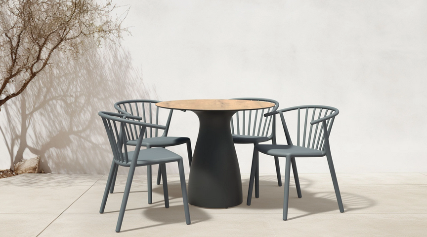 Es gibt auch eine Variante mit geschlossenem Rückern oder mit fixem Sitzpolster: Outdoorstoff Acryl