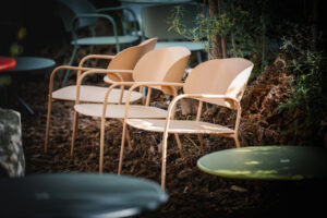 Stapelbarer Stuhl aus Aluminium, leicht und dennoch robust, lackiert in den Farben lt. Kollektion.