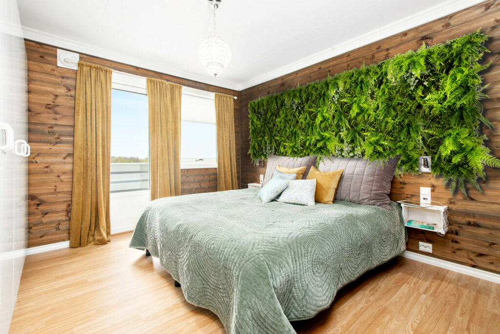 Die künstliche Vegetation an der Wand muss nicht wie bei lebenden Wänden gegossen werden.