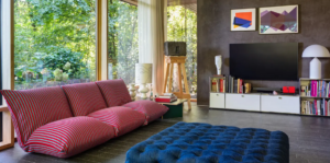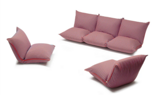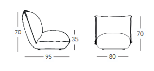 Der Polstersessel Brezza Relax. Für Outdoor-Bereiche entwickelt, ist er von der archetypischen Form zwei großer Kissen inspiriert, die in ihrer Kombination für eine Sitzfläche samt Rückenlehne mit großzügiger und praller Form sorgen.
