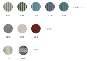 Sitzfläche und Rückenlehne. Bezug: Limonta -Gewebe, 100% Polypropylen,