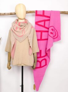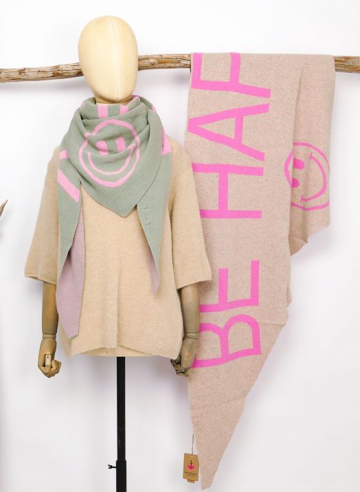 Dreieckstuch Feinstrick Jaquard mit Kaschmir “BE HAPPY”
