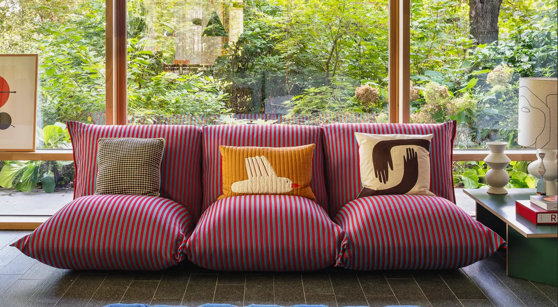 Der Polstersessel Brezza Relax. Für Outdoor-Bereiche entwickelt, ist er von der archetypischen Form zwei großer Kissen inspiriert, die in ihrer Kombination für eine Sitzfläche samt Rückenlehne mit großzügiger und praller Form sorgen. Einladender Polstersessel, der ruhig auf dem Boden ruht. Die einzelnen Module können kombiniert