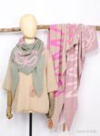 Dreieckstuch Feinstrick Jaquard mit Kaschmir “NAMASTE” softe Haptik mit zweifarbigem Muster – beidseits tragbar Material: 40% Merino extrafein, 30% Viskose, 20% rec. Polyamid, 10% Kaschmir verfügbare Farben: