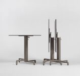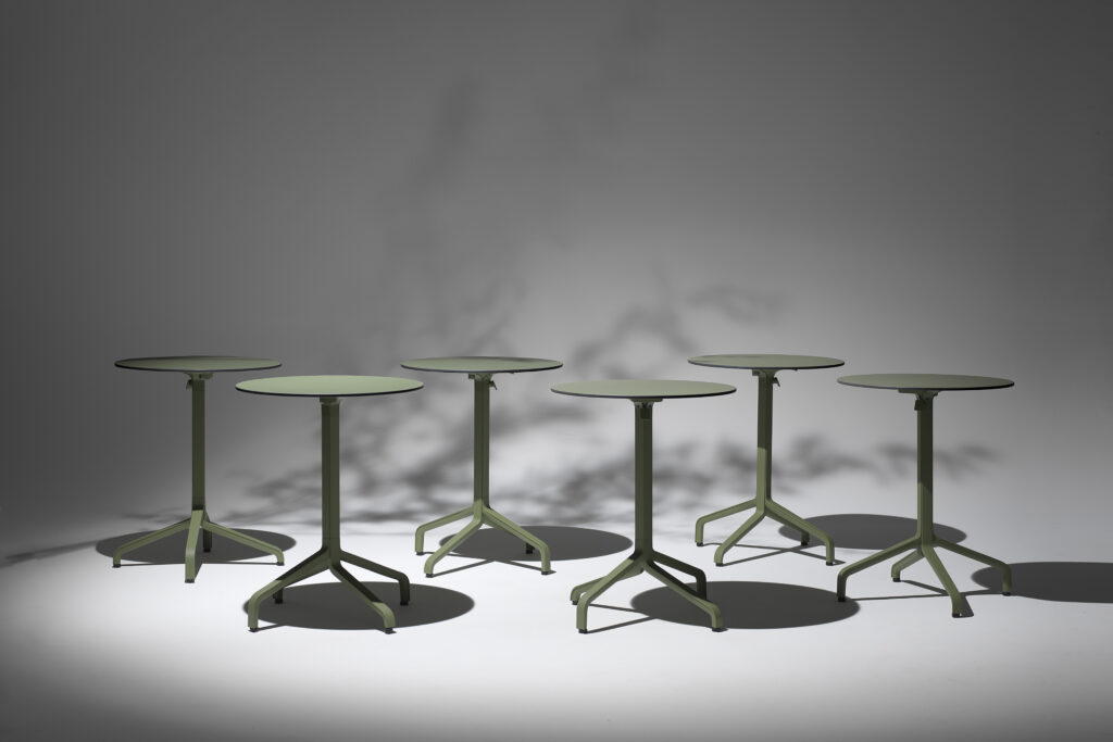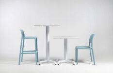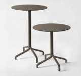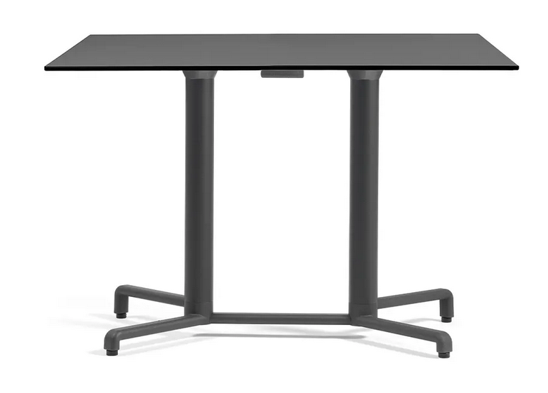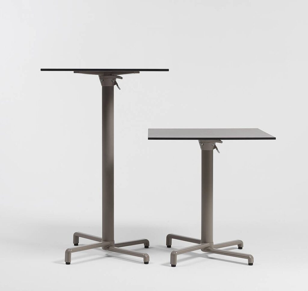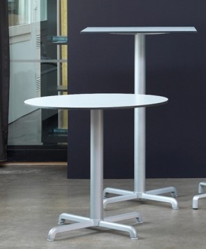 Tischgestell doppel vierzehig runde Säule und Beine Material: Aluminium pulverbeschichtet mit höhenvertellbaren Gleiter/Ausgleichsschrauben bei Unebenheiten abklappbar und ineinander stapelbar Farben: weiß, anthrazit glitter, tortora (taupe)