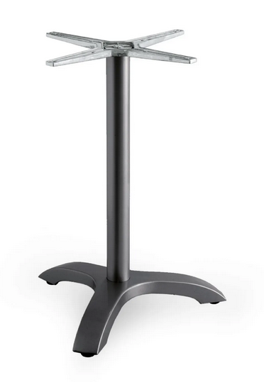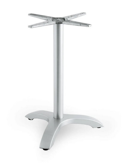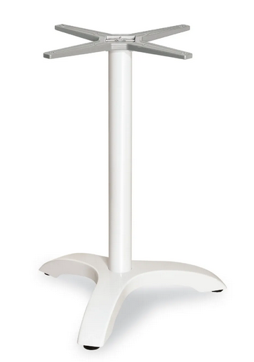 Aluminium-Spritzgussgestell mit Polyester-Pulverbeschichtung, beschwert mit lackiertem Gusseisen. Aluminiumrohr Ø 60 mm 4-strahlig Farben: anthrazit, weiß, silber Eßtisch Höhe 71 cm, 7,5 kg – geeignet für Plattengröße Ø 80 cm, 60×60, 70×70, 80×80 cm Stehtisch Höhe 110 cm, 8,5 kg – geeignet für Plattengröße Ø 60,