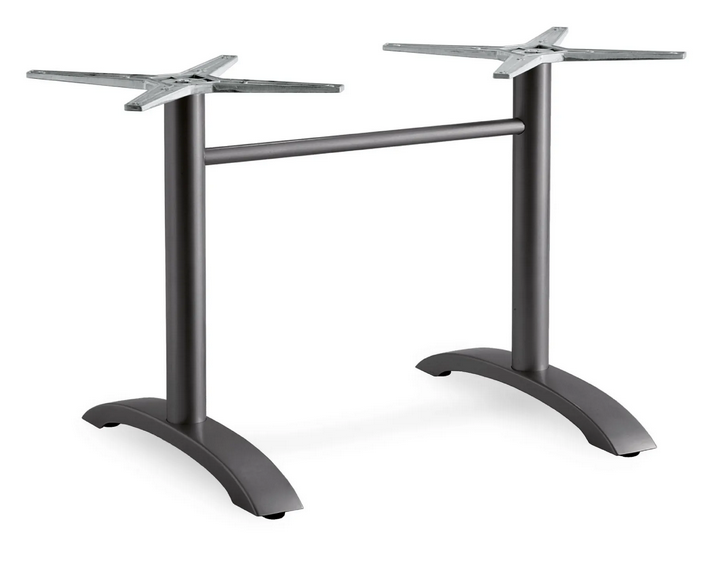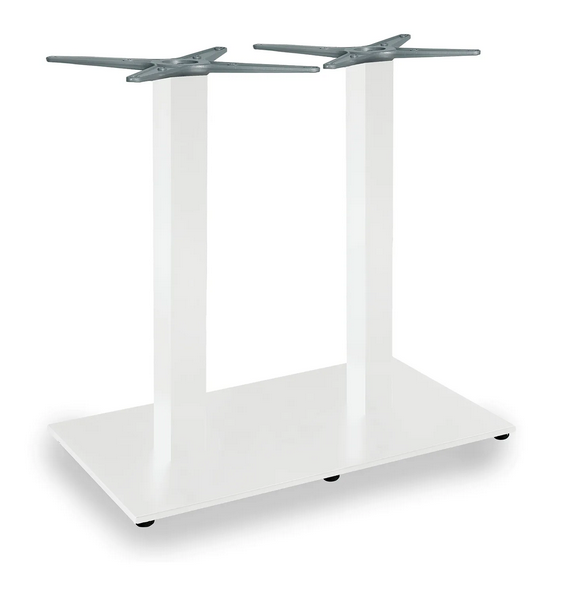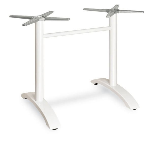 Tischgestell doppel vierzehig runde Säule und Beine Material: Aluminium pulverbeschichtet mit höhenvertellbaren Gleiter/Ausgleichsschrauben bei Unebenheiten abklappbar und ineinander stapelbar Farben: weiß, anthrazit glitter, tortora (taupe)