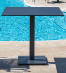 Aluminiumsockel, polyesterpulverbeschichtet, mit verzinktem Stahl beschwert mit Ausgleichsschrauben Sockel 40 x 40 cm Farben: anthrazit, beige, weiß Ausführungen: Eßtisch Höhe 72 cm, 14 kg – geeignet für Plattengröße Ø 80 cm, 60×60, 70×70, 80×80 cm Stehtisch Höhe 110 cm, 14,7 kg – geeignet für Plattengröße