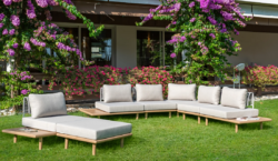 Gestell: Aluminium pulverbeschichtet Sitz und Rückenlehne: handgeflochtenes Synthetikseil Armlehnen mit Techno-Wood Einsätzen inkl. Sitzauflage aus 100 % Polyestergewebe (abziehbar) Farben Gestell/Rope: beige oder grün stapelbar Bank: H 80,5 x SH 41 x B 147 x T 70,5 cm, stapelbar (5 Stk.) Loungesessel: H 80,5 x SH