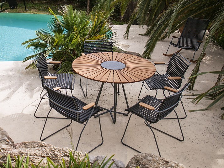 Fläche aus ultradünnem, plastischem Laminat, abgerundete Ecken und robuste Aluminiumstruktur mit rundem Querschnitt. Beine aus epoxiertem Aluminium lackiert. Höhenverstellbaren Füßen. Platte: aus 6mm HPL Materia (Schichtstoff) mit sanft abgerundeten Kanten Das bündige Druckbefestigungssystem verzichtet auf Schrauben: eine hochmoderne technische Lösung, die die Ästhetik der Tischfläche