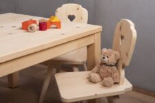 RICKY Kinderstuhl & Tisch für drinnen und draußen. Injiziert mit Polypropylen. Stapelbar. UV-Schutz Farben: rot, orange, gelb, blau, pink