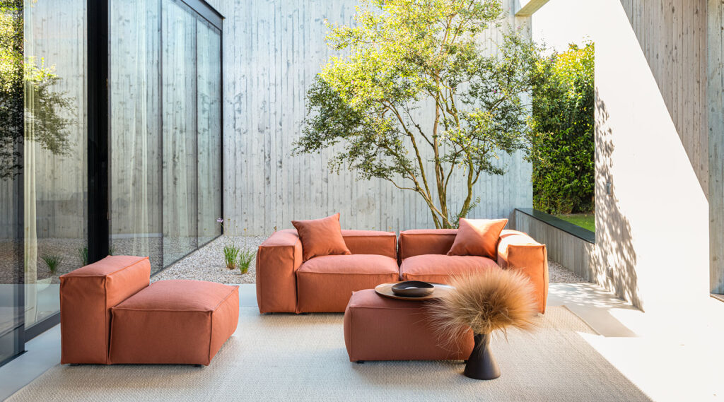 Die Serie MEDITERRANEO UP ist eine modulare Linie mit großzügigen Volumina, die das Mediterraneo-Design um das neue Detail der Füße bereichert. Der erhöhte Sockel verleiht der Komposition ein Gefühl der Schwerelosigkeit und eine luftige Präsenz. Sitz- und Rückenlehnenkonstruktion: Gefertigt aus leichtem, robustem Okoumé-Holz, ideal für